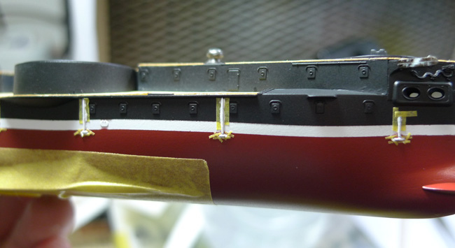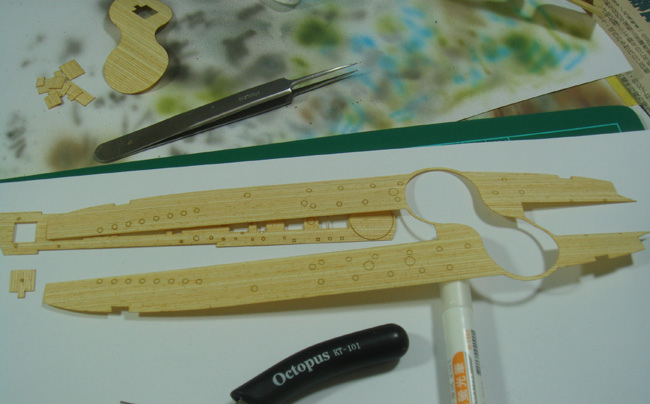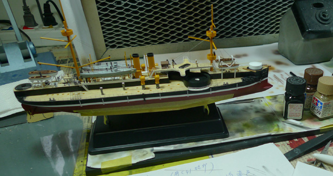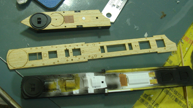 威俊 1/350的模子,內附的蝕刻片該有的都有,除了繩梯蝕刻片要另外找。第一次使用甲板貼紙,還蠻方便的,省去遮罩的麻煩,但要小心甲板不要有些地方,浮起來了!!